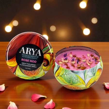 Freshen your space with the luxurious scent of Arya Rose Mod, a high-fragrance Smoke Odor Eliminator Candle designed to neutralize smoke, pet, and household odors with ease. Infused with the modern elegance of rose petals, soft musk, and subtle florals, this 8oz candle burns clean and bright, leaving your room beautifully refreshed and warmly inviting.