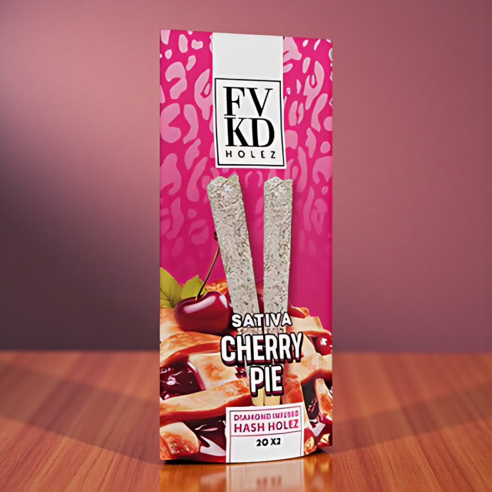 Savor the sweetness with FVKD Holez Cherry Pie Diamond Infused Hash Holez, a 2-pack of potent 2g pre-rolls loaded with premium flower and infused with diamonds for unmatched strength and flavor. Each puff delivers rich cherry and doughy pastry notes with a hint of gas, followed by a smooth, relaxing high that balances body and mind. Slow-burning, terp-rich, and perfectly rolled — this is dessert with a serious kick.