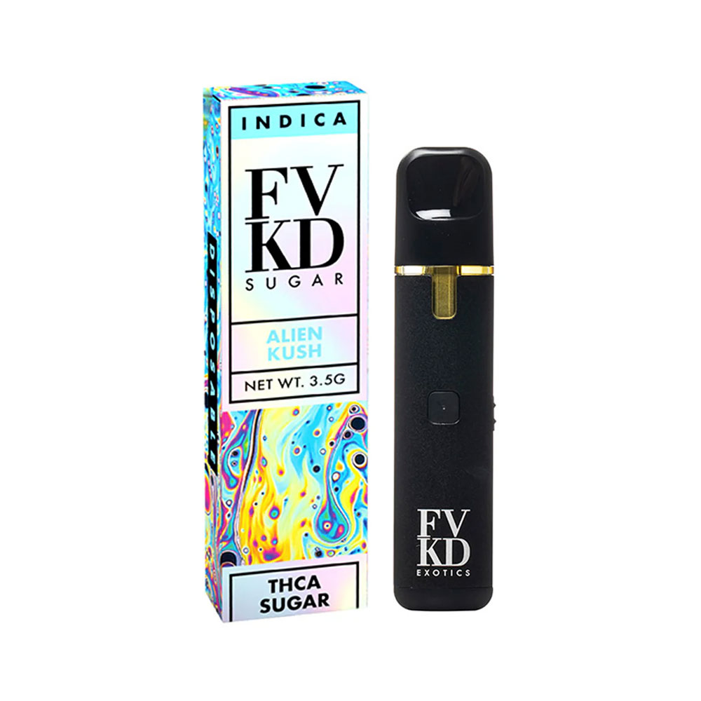 Unwind with the cosmic tranquility of FVKD Exotics Alien Kush, a premium 3.5g THCa Sugar Disposable designed for deep relaxation and flavorful satisfaction. This indica-dominant strain delivers a calming, full-body experience, making it perfect for evening use or when you need to decompress