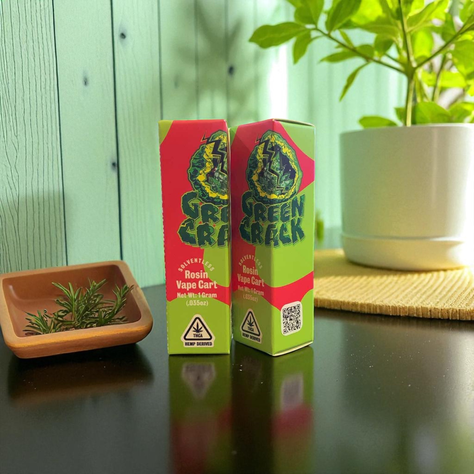 Sharp, uplifting, and clear — Green Crack in cart form keeps energy high and focus locked in. This 1g solventless rosin cart is crafted for smooth pulls and clean effects, perfect for staying motivated on the go.