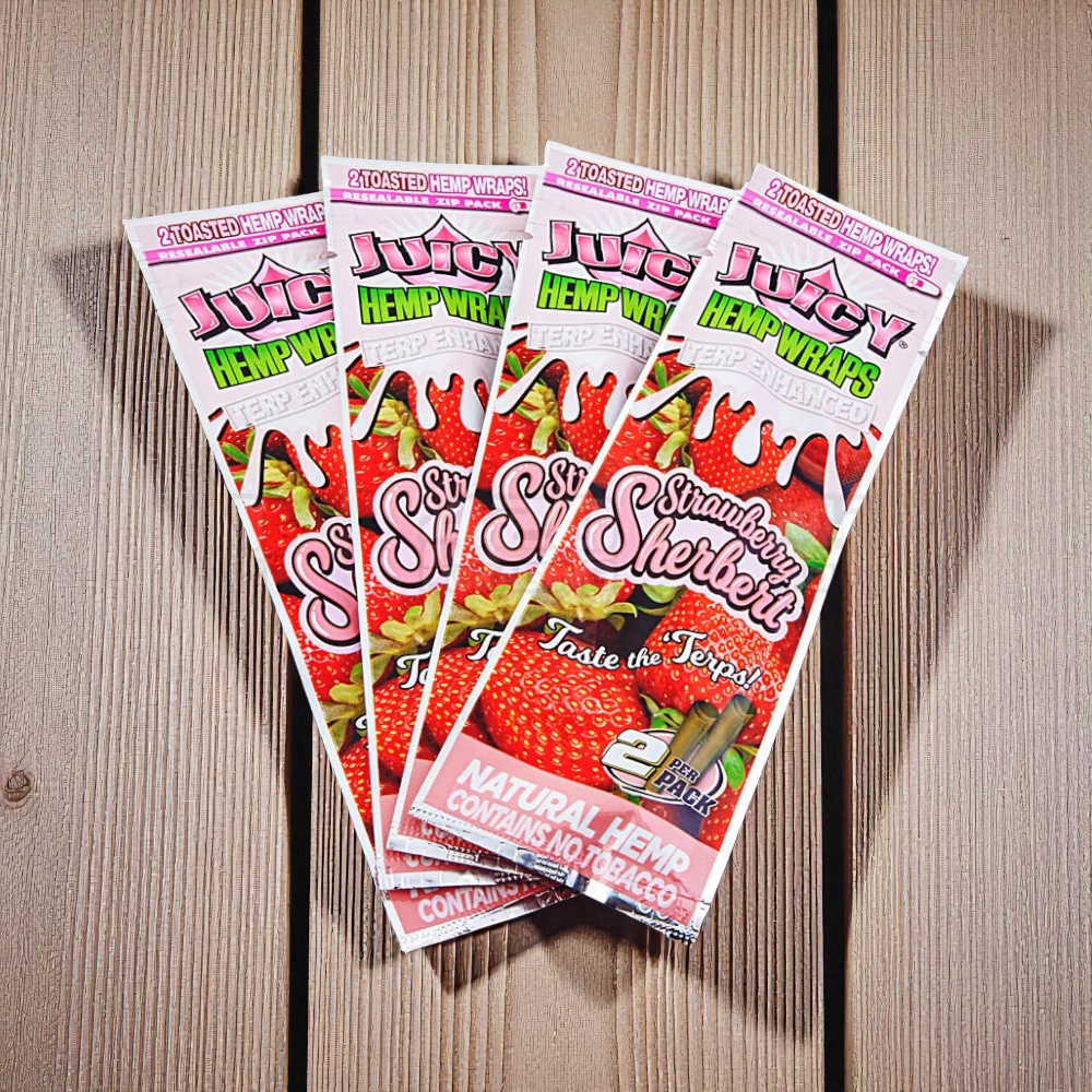 Sweeten your sesh with Juicy Hemp Wraps Strawberry Sherbert. Made from 100% hemp and infused with fruity strawberry sherbert flavor, these wraps burn slow and smooth for a flavorful, chill experience. Each pack includes 2 wraps—perfect for rolling up something fun, tasty, and ready to enjoy with friends or solo.