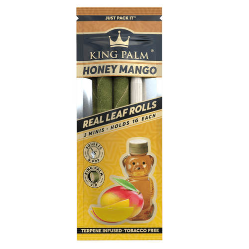 Savor a sweet and tropical twist with King Palm Honey Mango Mini Rolls. Crafted from natural palm leaves, each roll features a squeeze-to-activate flavor tip that releases a smooth blend of honey and mango with every draw. Perfectly sized for solo sessions or sharing, this 2-pack delivers a slow, even burn and a flavorful smoke from start to finish.