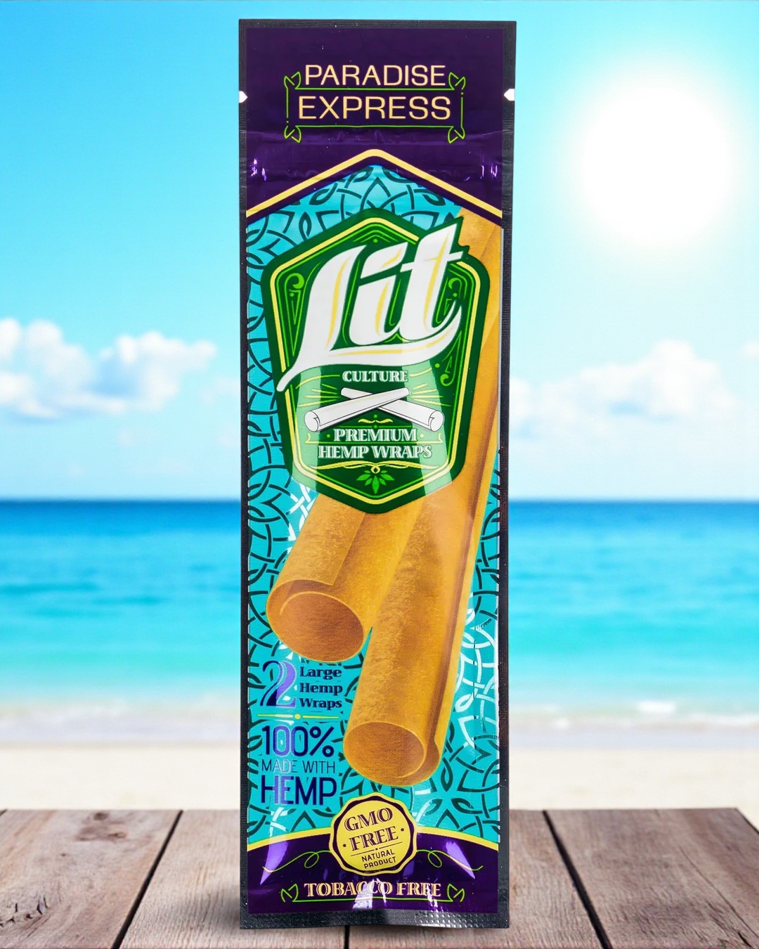 Escape to paradise with Lit Culture Paradise Express Hemp Wraps. Made from premium hemp and infused with a smooth, tropical fruit blend, these wraps deliver rich, flavorful hits that transport you to island vibes with every puff. Each pack includes 2 wraps—perfect for a smooth, laid-back session anytime.