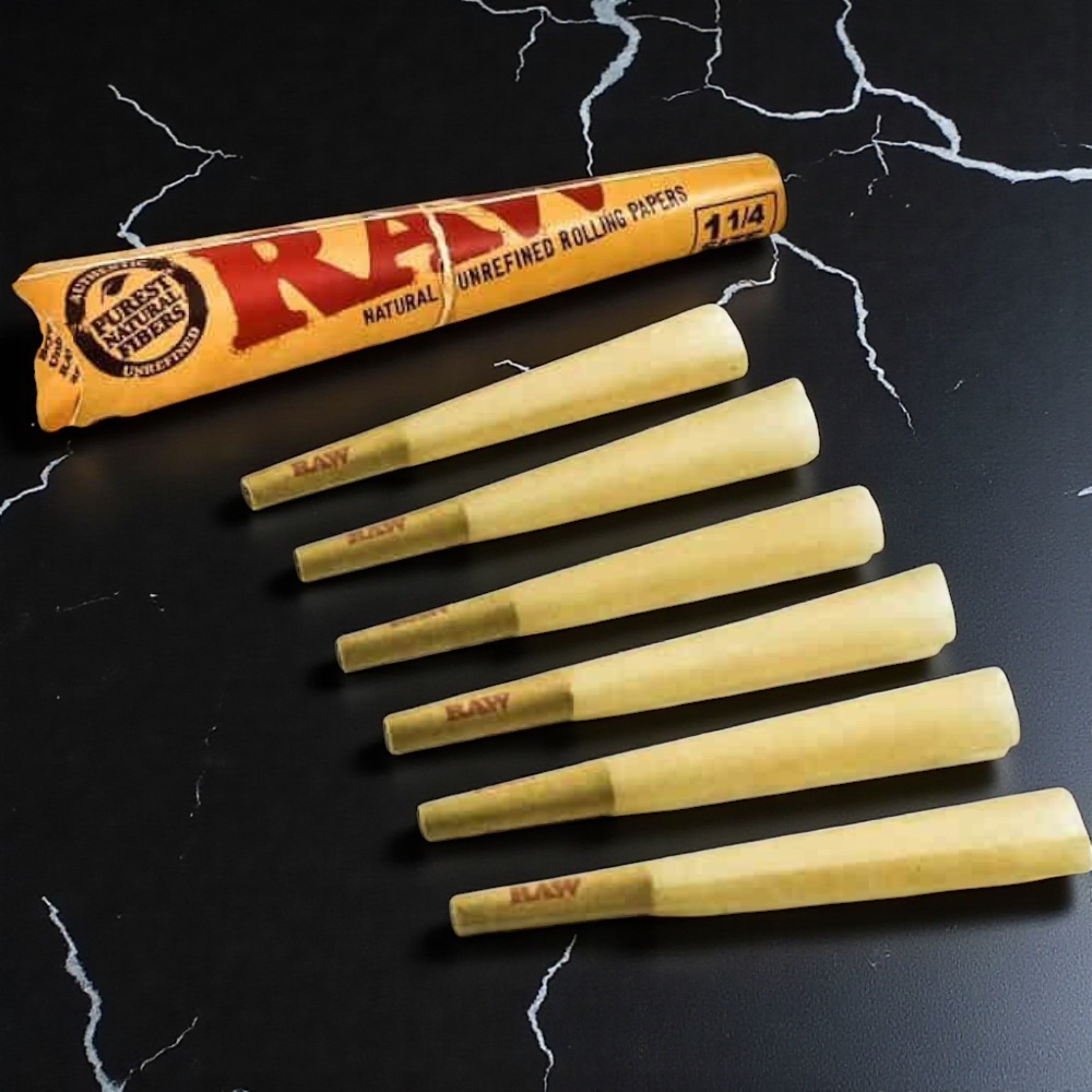 Roll up with ease using RAW Classic 1 ¼ Cones. Made from natural, unrefined paper, these pre-rolled cones burn slow and even for smooth, flavorful hits every time. Each pack includes 6 cones—perfect for quick sessions, sharing with friends, or keeping a few ready for whenever the vibe strikes.