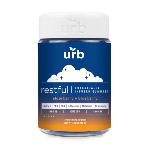 Slip away into Dreamland with Urb’s botanically infused gummies, crafted with Delta 9, CBD, CBN, L-Theanine, Melatonin, and Chamomile. The soothing blend of elderberry and blueberry wraps your senses in sweet, calming flavors while the formula works to quiet the mind and relax the body. Perfect for winding down and drifting into deep, restorative sleep.